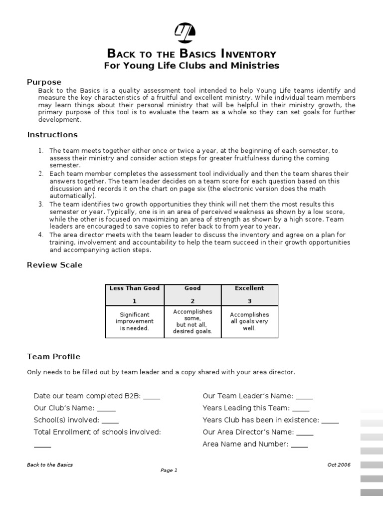 Back to the Basics is a quality assessment tool intended to help Young Life teams identify and