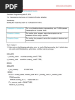 1. Write a PL/SQL block to display the country_id and country_name values from the
