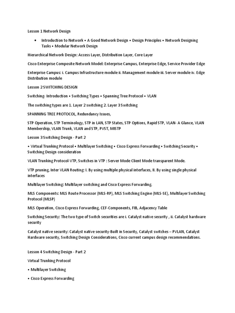 Hardware security, Switching Design Considerations, Cisco current campus design recommendations.