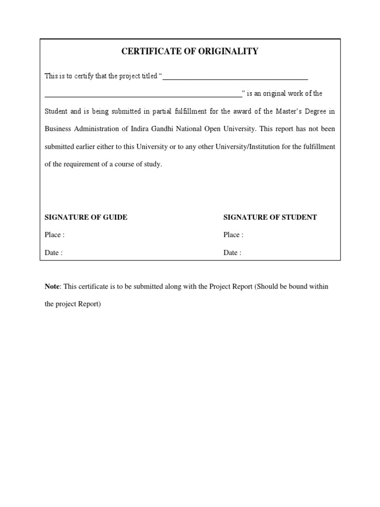 Business Administration of Indira Gandhi National Open University. This report has not been
