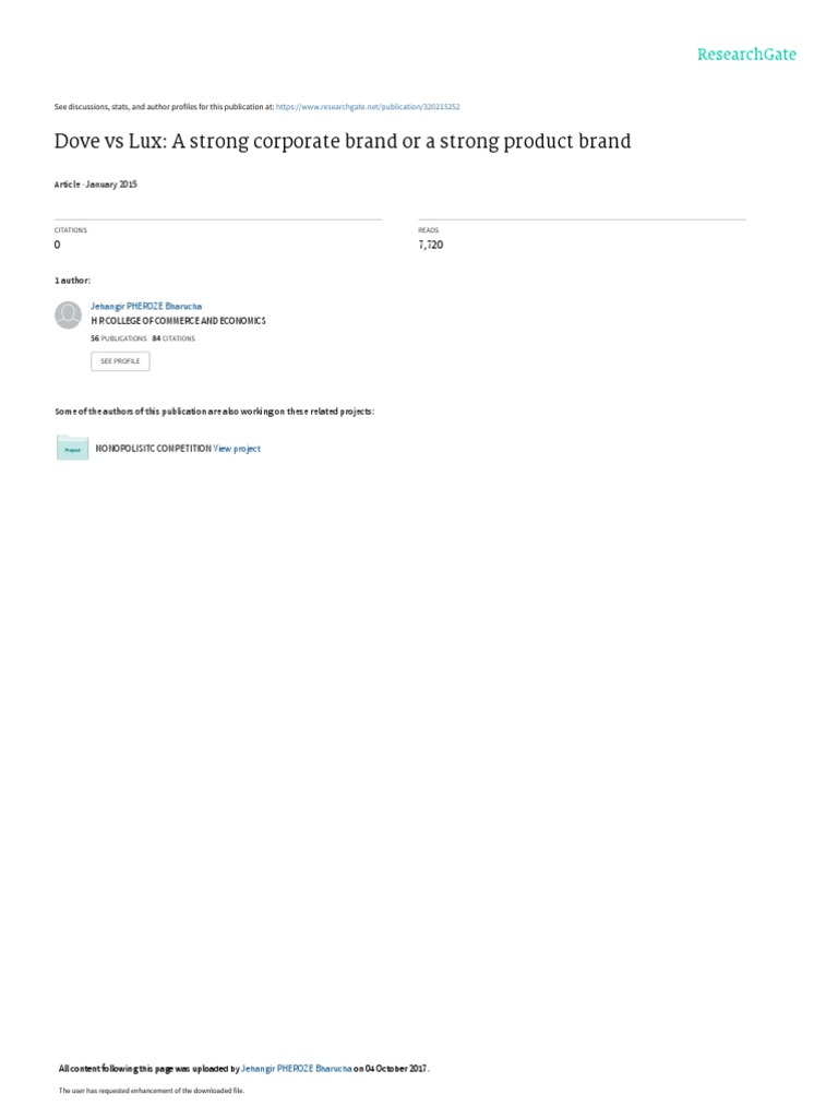 Impact Factor: 5.2 Dove vs Lux: A strong corporate brand or a strong