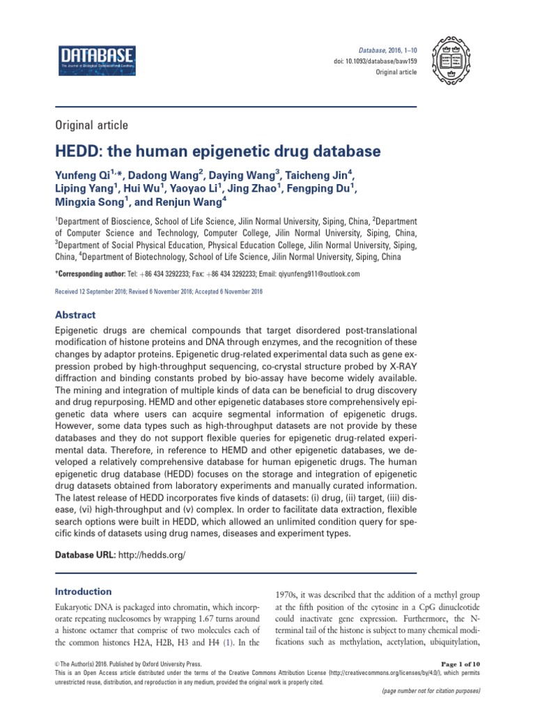 veloped a relatively comprehensive database for human epigenetic drugs. The human