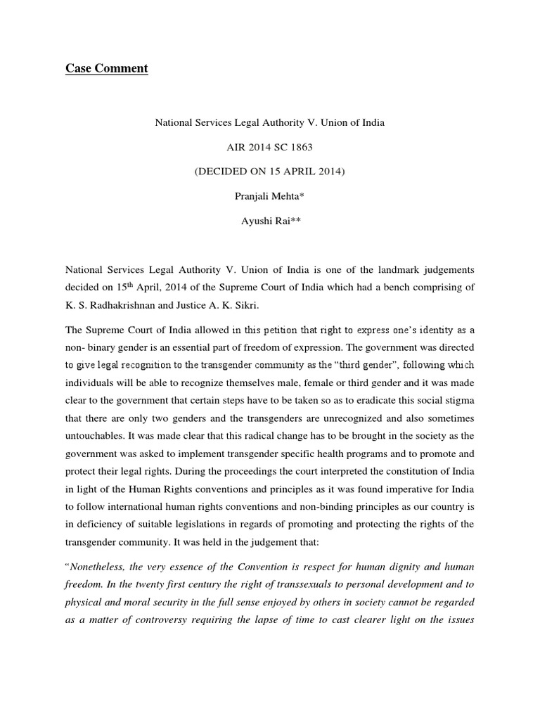 the landmark cases in Indian history. Not only it acknowledges transgenders as a third gender,