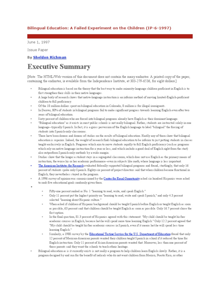 • The American Institutes for Research evaluated federally supported bilingual programs and found, startlingly, that only 16