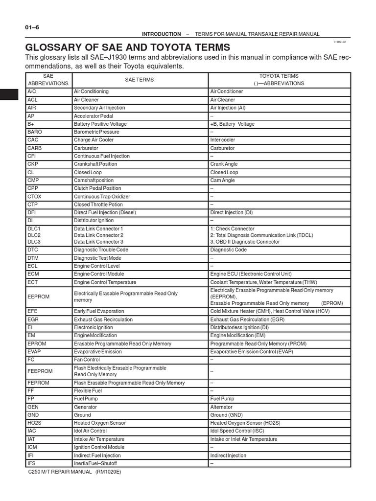 INTRODUCTION – TERMS FOR MANUAL TRANSAXLE REPAIR MANUAL
