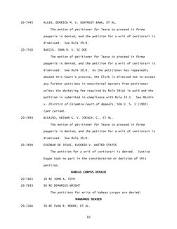 ORDERS IN PENDING CASES