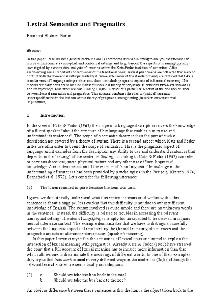 interaction of lexical meaning with pragmatics. Already Katz & Fodor (1963) have stressed