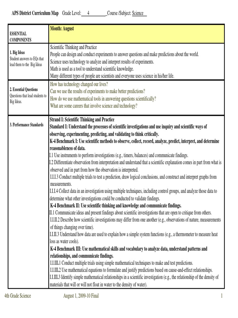 APS District Curriculum Map Grade Level: 4 _Course /Subject: Science