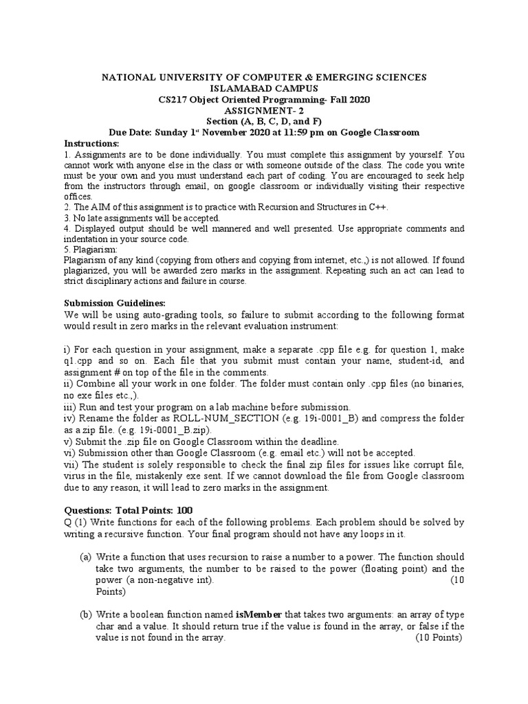 2. The AIM of this assignment is to practice with Recursion and Structures in C++.