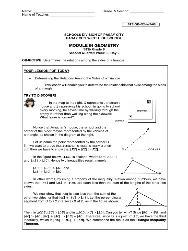 This lesson will enable you to determine the relationship that exist among the sides