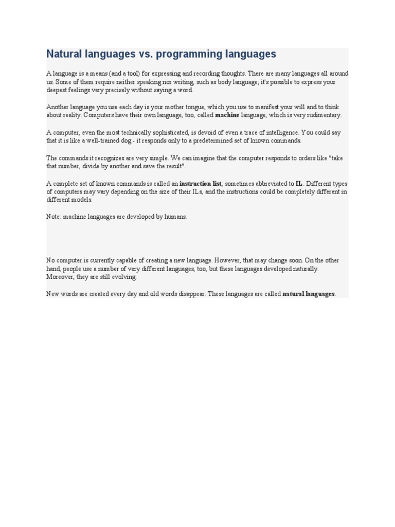 about reality. Computers have their own language, too, called machine language, which is very rudimentary.