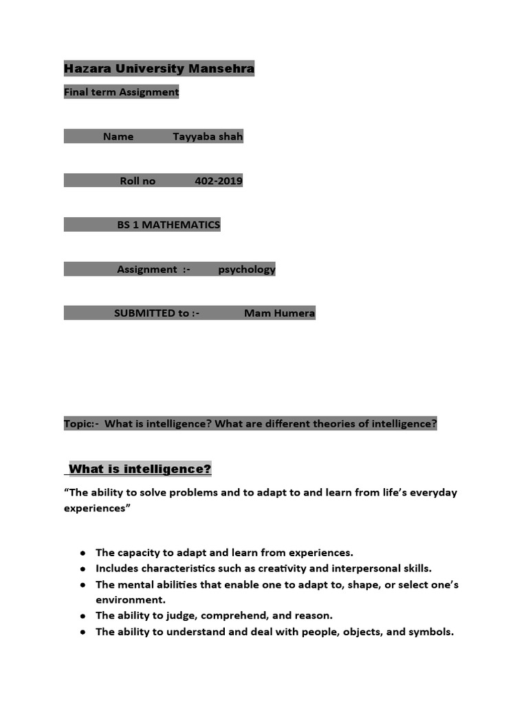 Topic:- What is intelligence? What are different theories of intelligence?