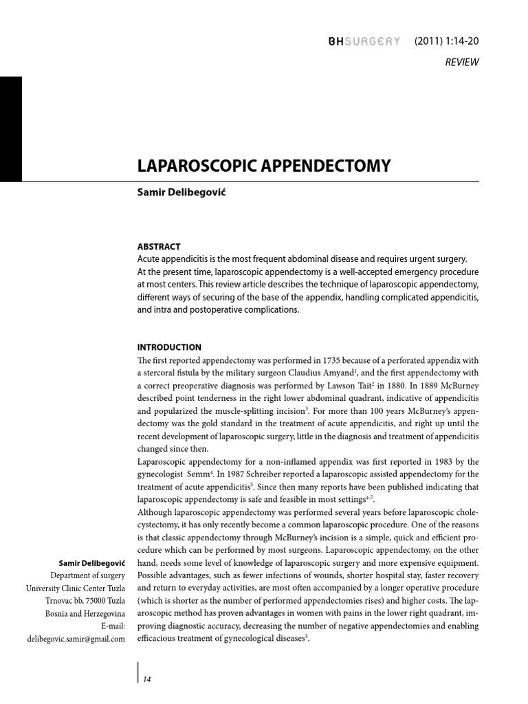 Trnovac bb, 75000 Tuzla (which is shorter as the number of performed appendectomies rises) and higher costs. The lap-