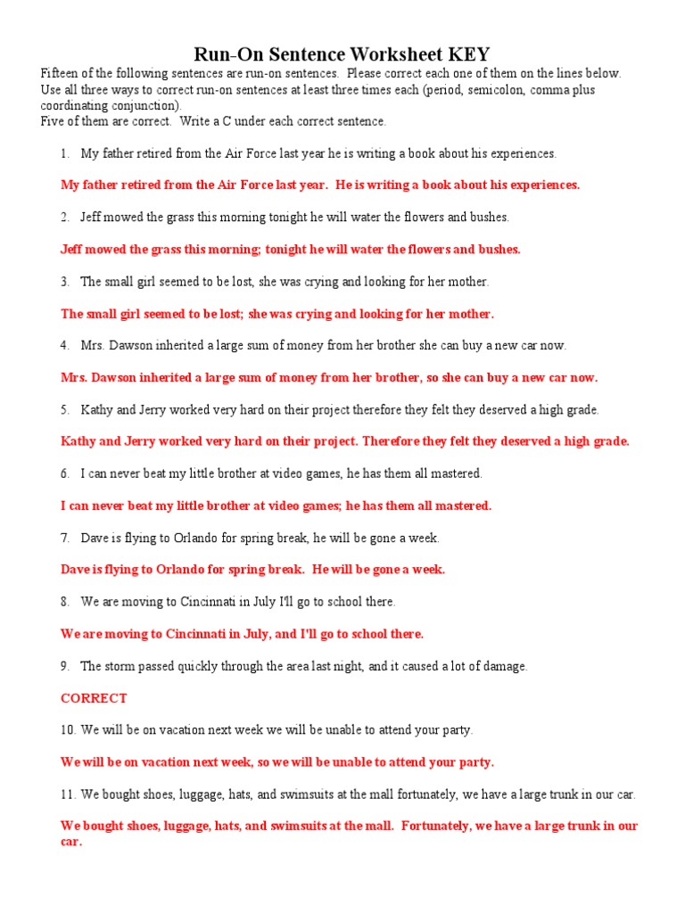 Fifteen of the following sentences are run-on sentences. Please correct each one of them on the lines below.