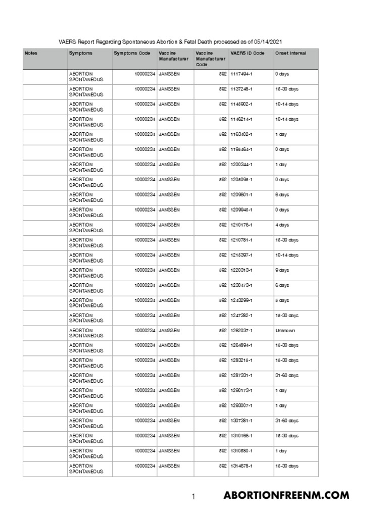 VAERS Report Regarding Spontaneous Abortion & Fetal Death processed as of 05/14/2021