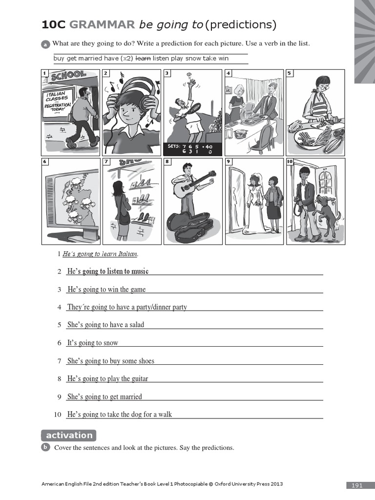 a What are they going to do? Write a prediction for each picture. Use a verb in the list.