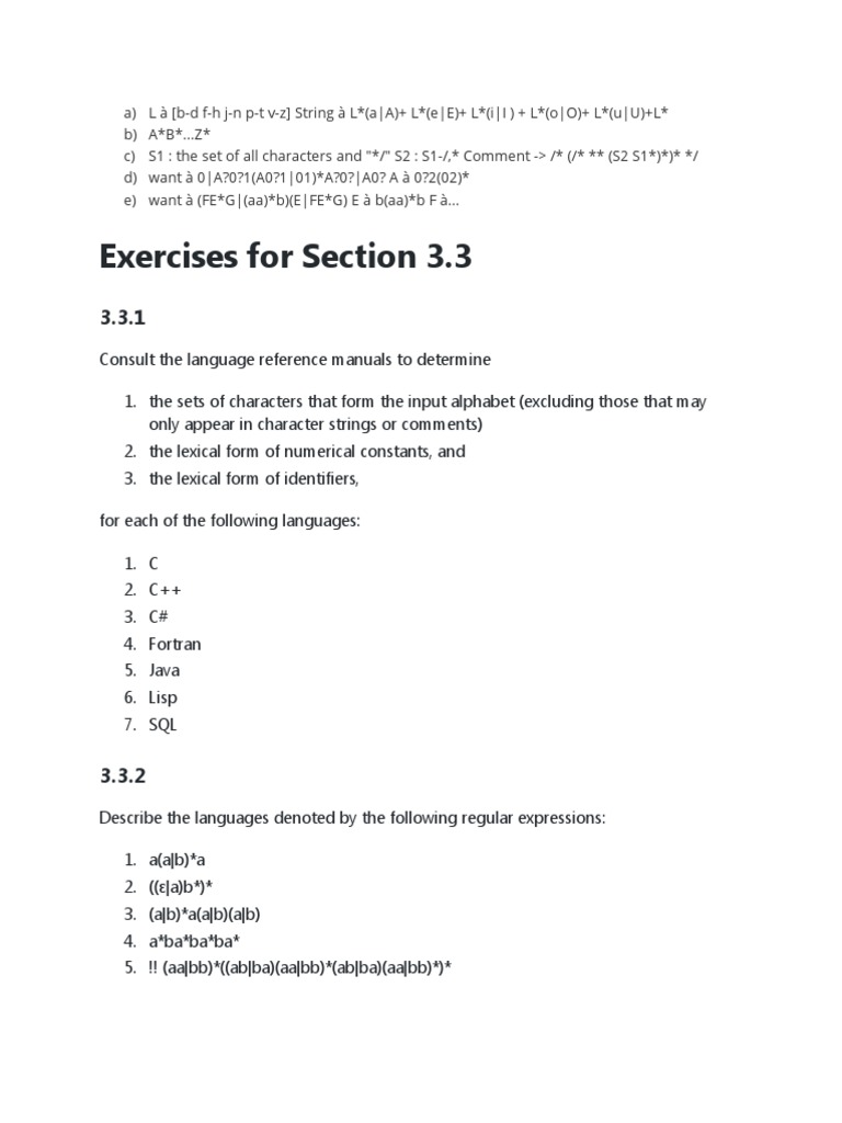 !Write regular definitions for the following languages: