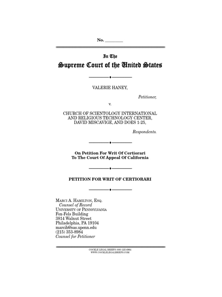 Valerie Haney was the plaintiff below and is Peti-tioner here, and the Church of Scientology Interna-tional, Religious Technology Center, David Miscavige, and Does 1-25 were Defendants and Real Parties of Interest below and are Respondents here. The Los An-geles County Superior Court was also a Respondent below.