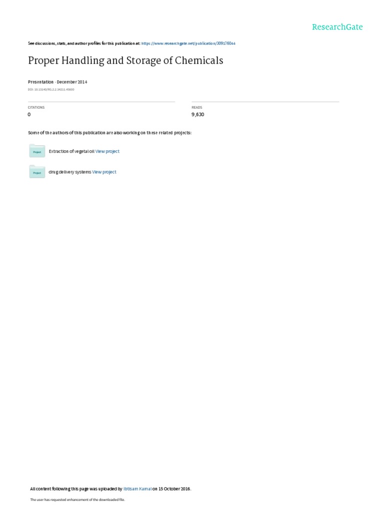 disasters. Violent reactions could occur due to the storing or mixing incompatible chemicals