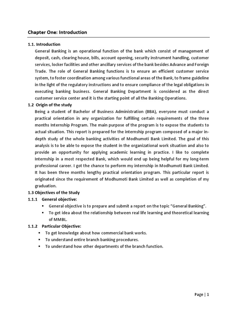 General objective is to prepare and submit a report on the topic “General Banking”.