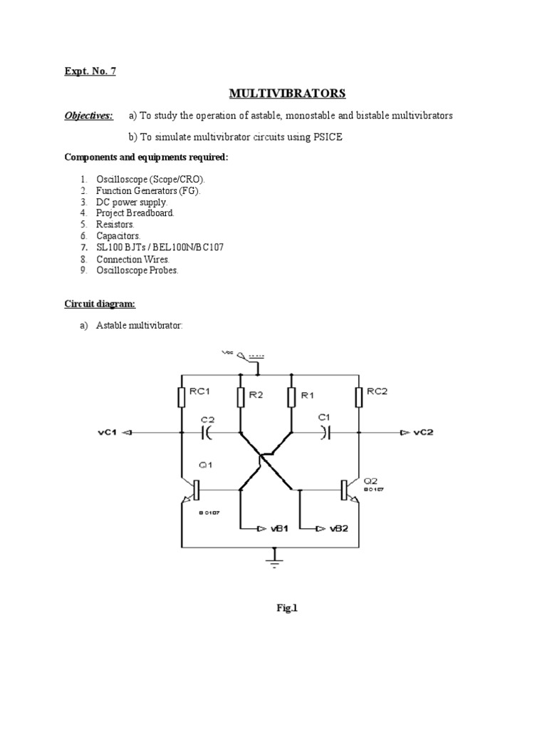 Objectives: a) To study the operation of astable, monostable and bistable multivibrators