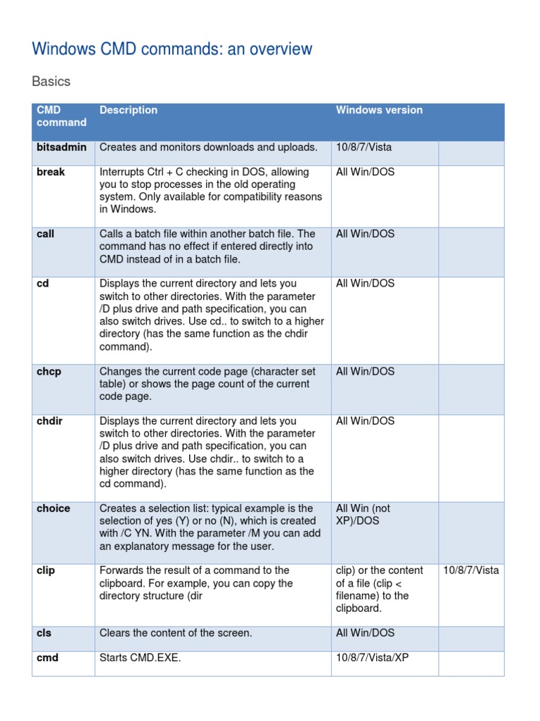 reg Manages the registry of the command prompt. Users can 10/8/7/Vista/XP