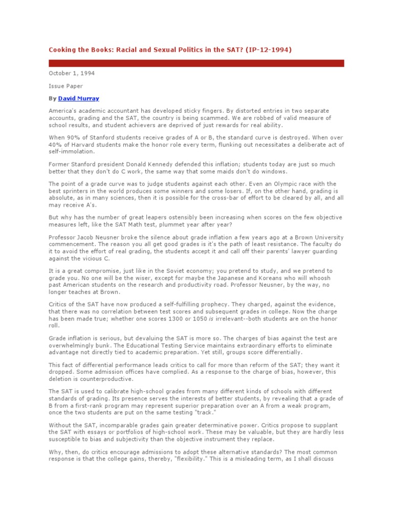 Cooking The Books: Racial and Sexual Politics in The SAT?