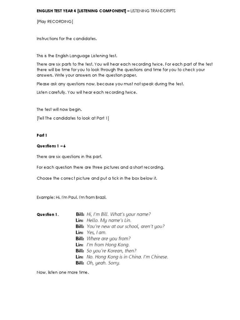 ENGLISH TEST YEAR 4 [LISTENING COMPONENT] – LISTENING TRANSCRIPTS