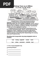 I. Pagbabasa sa isang maikling kwento at pagtukoy ng mga