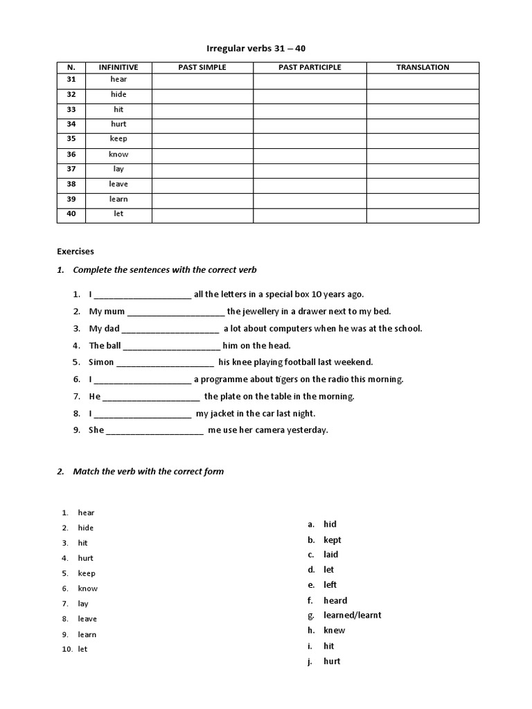 Irregular verbs 31 – 40