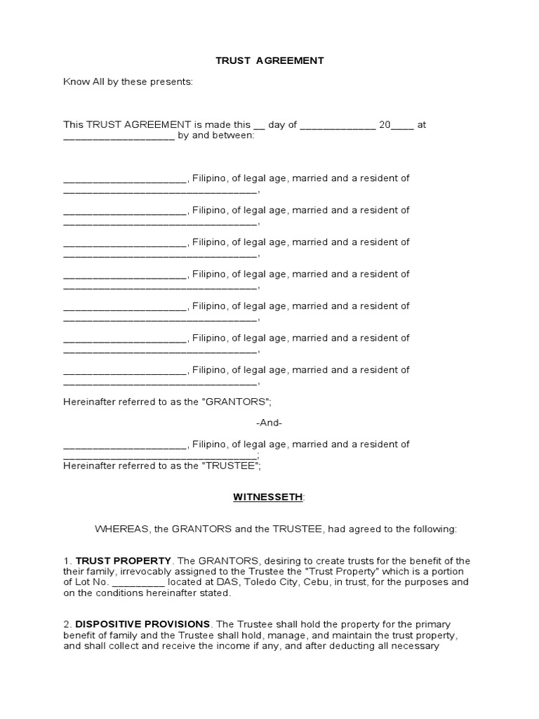 of Lot No. _________ located at DAS, Toledo City, Cebu, in trust, for the purposes and