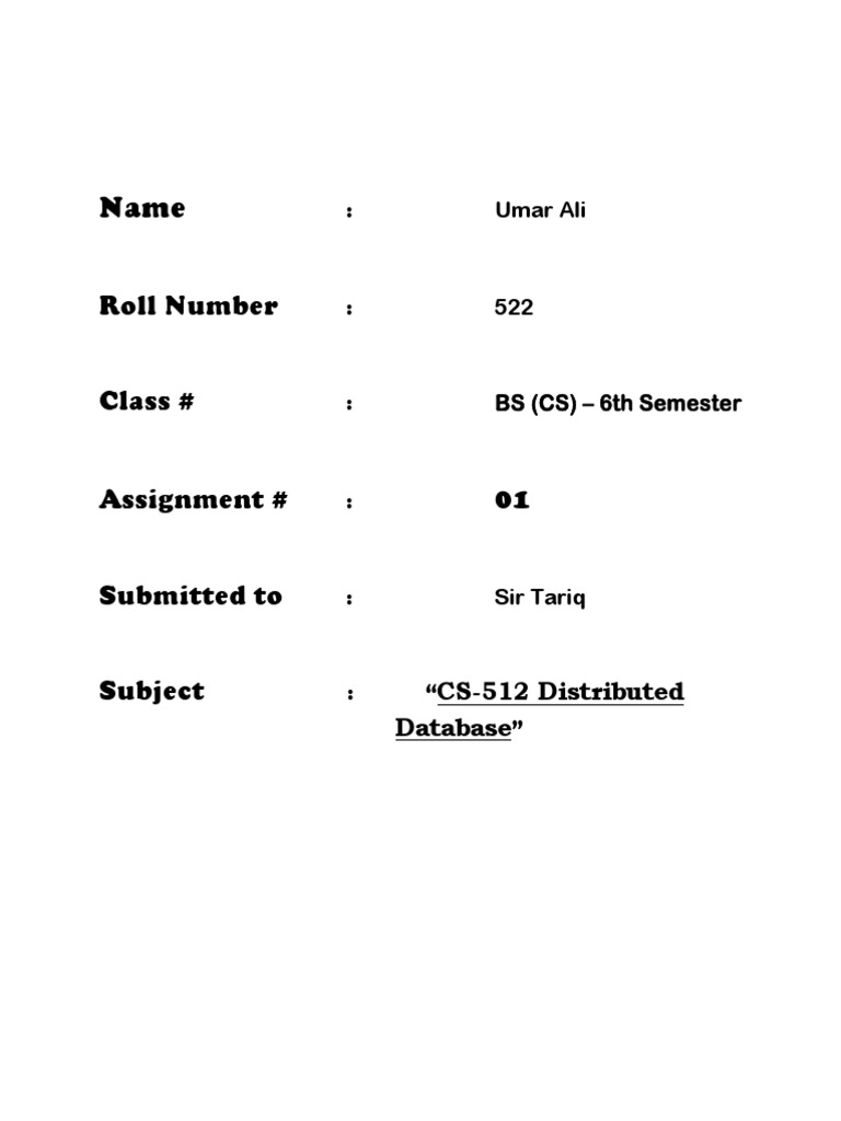 Vertical fragmentation – Splitting by columns – The schema of the relation