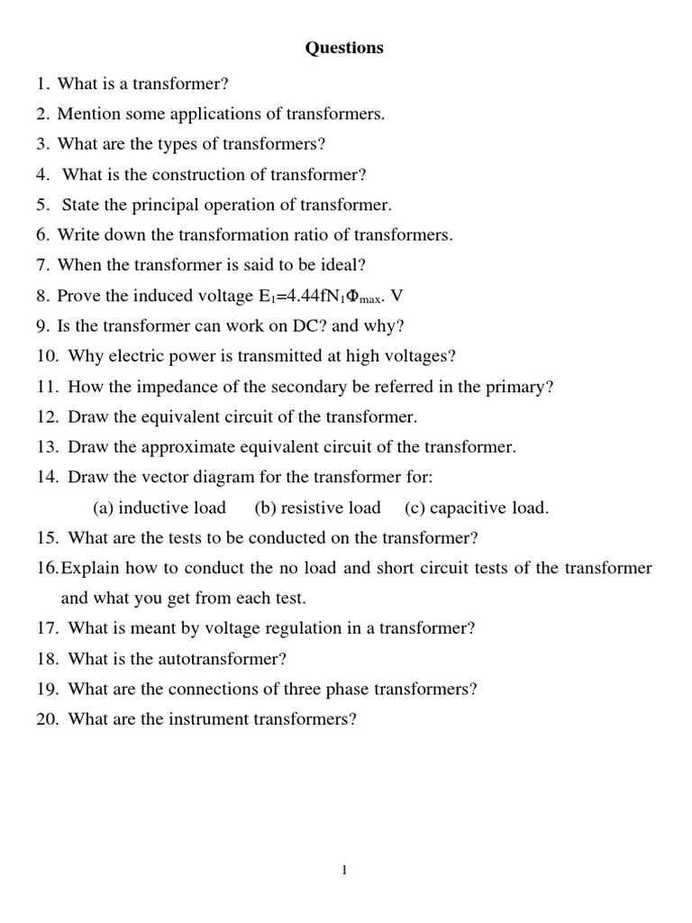 Sheet No 1 (Transformers)