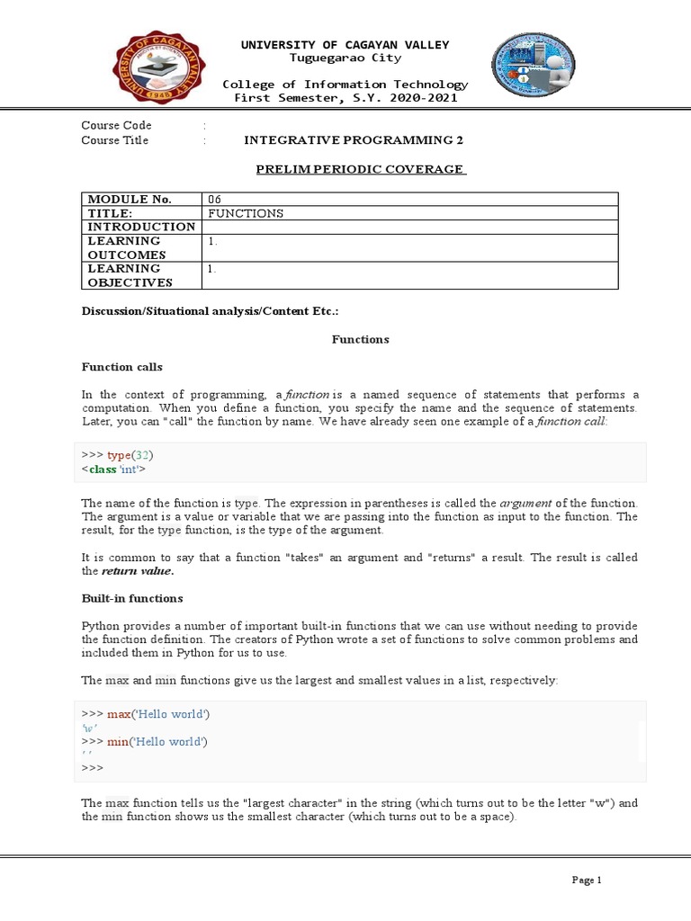 Course Title : INTEGRATIVE PROGRAMMING 2