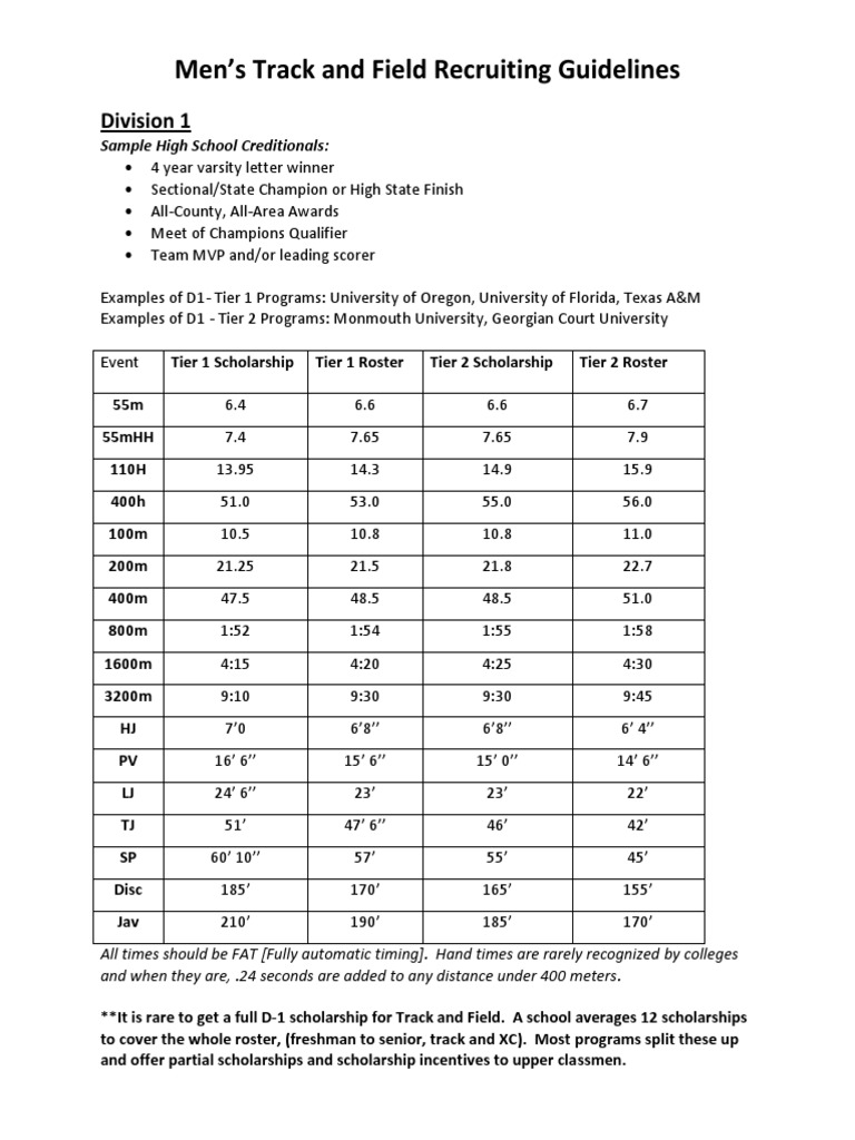 Men’s Track and Field Recruiting Guidelines