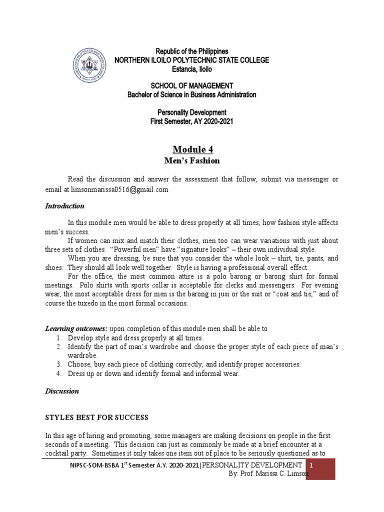 In this module men would be able to dress properly at all times, how fashion style affects