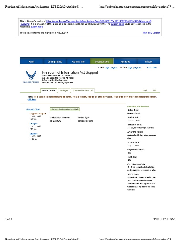 Freedom of Information Act Support - RTB220610 (Archived) -... http://webcache.googleusercontent.com/search?q=cache:x77_...2 of 3 3/18/11 12:41 PM