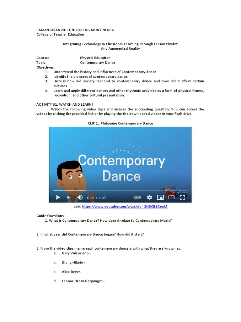 CLIP 9: LESSON 5 MODERN DANCE AND ELEMENTS OF DANCE