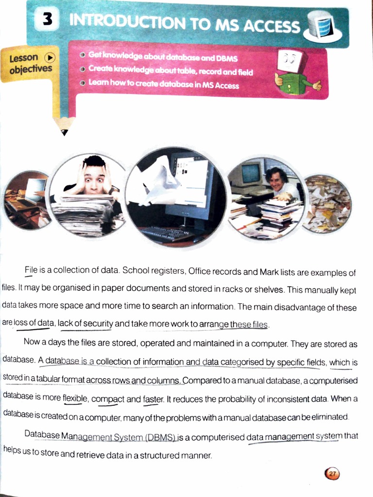 File is a collection of data. School registers, Office records and Mark lists are examples of