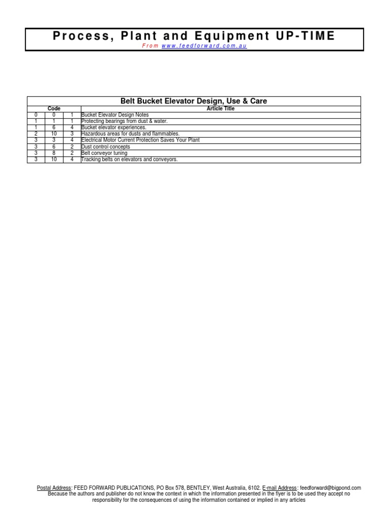 Process, Plant and Equipment UP-TIME: Belt Bucket Elevator Design, Use & Care