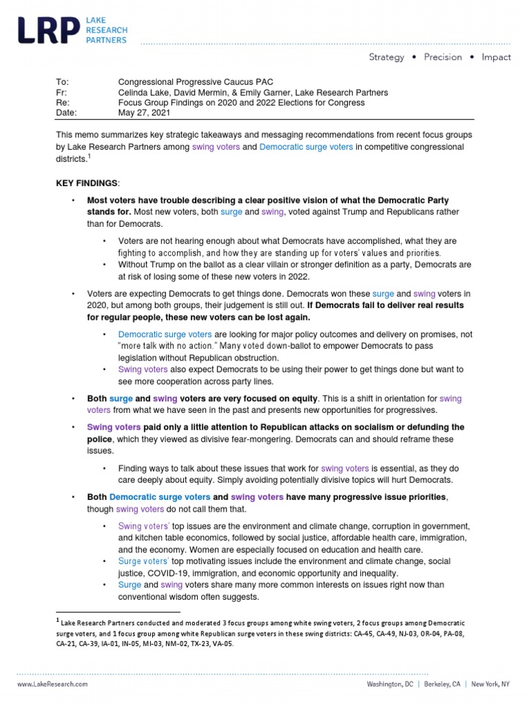 Democratic focus groups found that swing voters and surge voters expect results from Democrats and want them to address issues like climate change, healthcare, and racial equity. While surge…