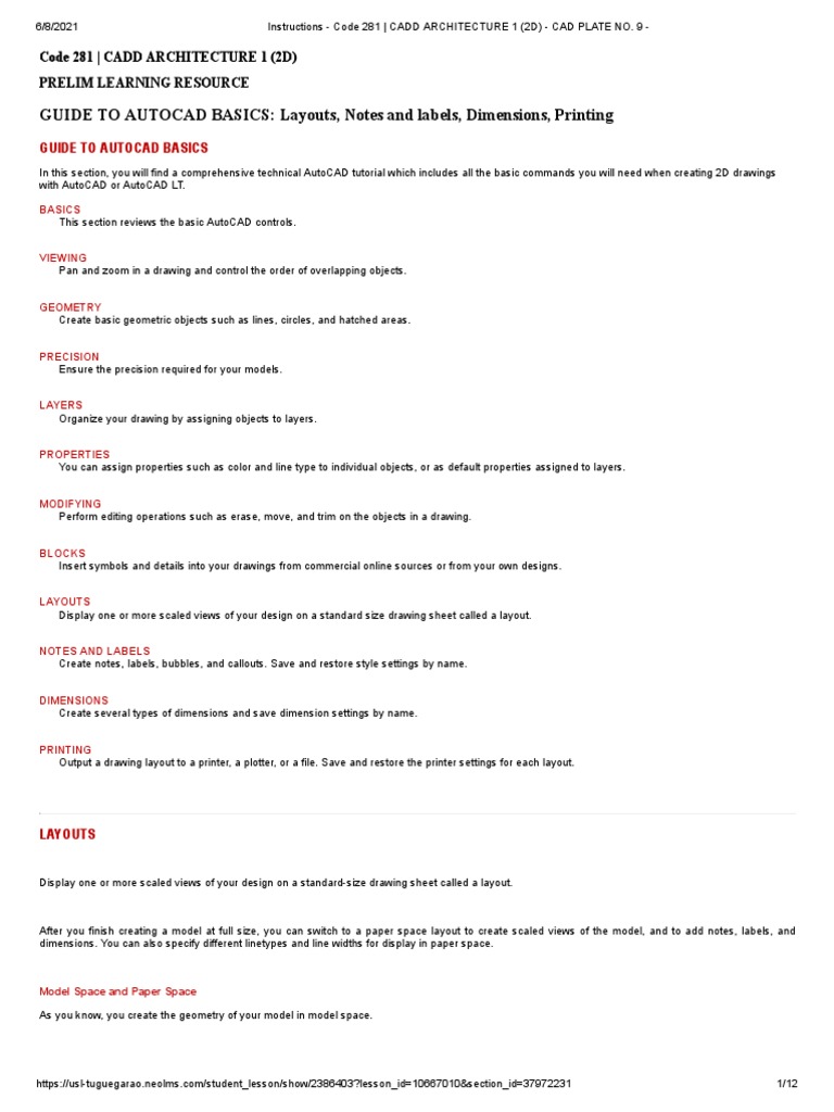 6/8/2021 Instructions - Code 281 | CADD ARCHITECTURE 1 (2D) - CAD PLATE NO.