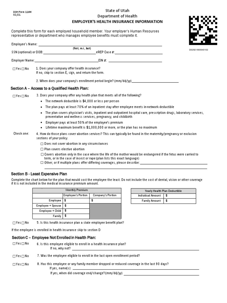 EMPLOYER'S HEALTH INSURANCE INFORMATION