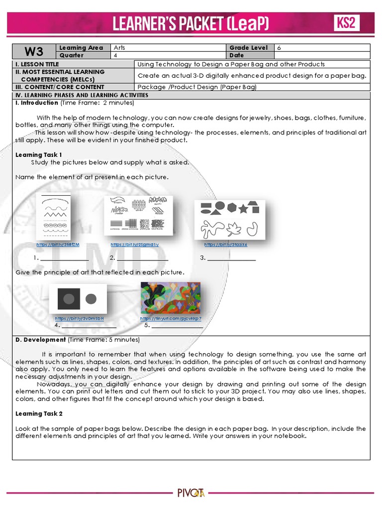 I. LESSON TITLE Using Technology to Design a Paper Bag and other Products
