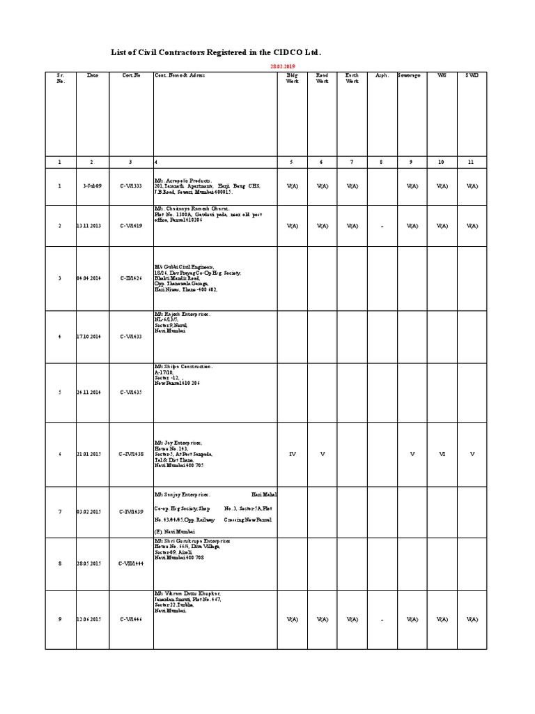 Sr. Date Cert.No Cont. Name & Adress Bldg Road Earth Asph. Sewerage W/S SWD