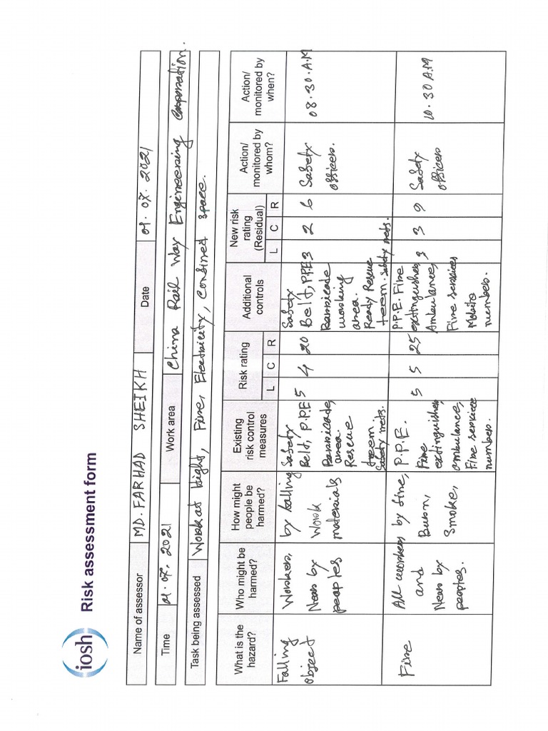 IOSH Risk Assessment Example Form