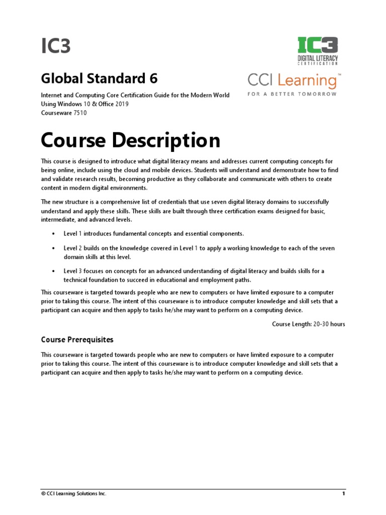 IC3 GS6 Computing and Internet Concepts for the Modern World Outline