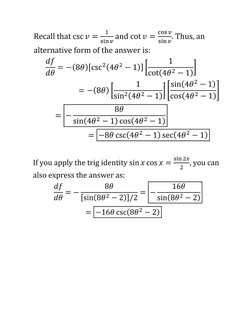 To take the derivative of the cotangent function, we will apply the