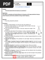 oscillation the theoretical period remains unchanged. Using the𝑇 = 𝑓 = 2π 𝑔