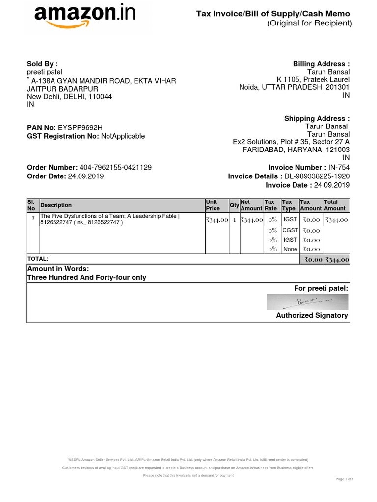 1 The Five Dysfunctions of a Team: A Leadership Fable | ₹344.00 1 ₹344.00 0% IGST ₹0.00 ₹344.00